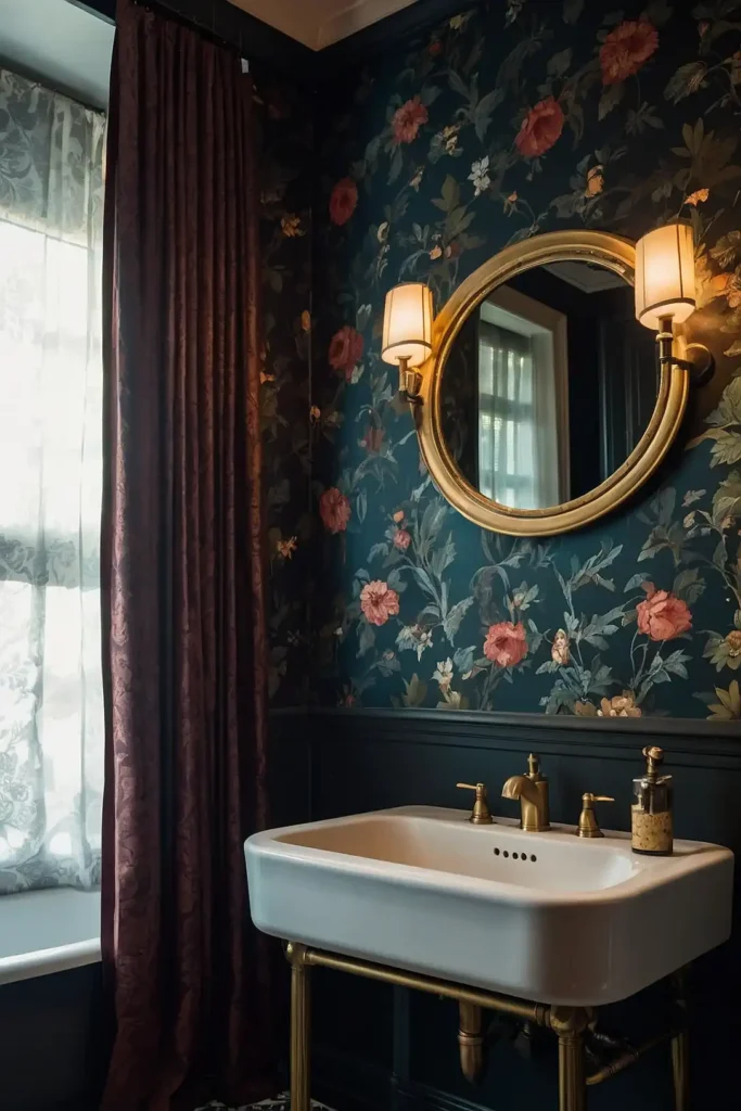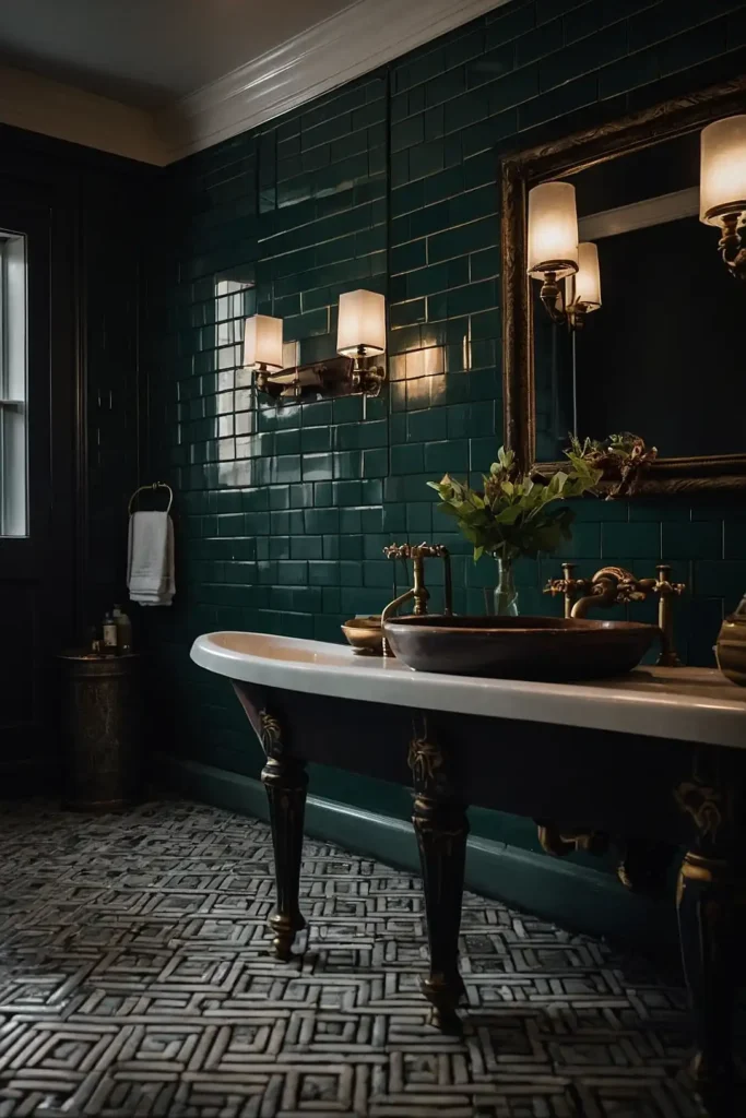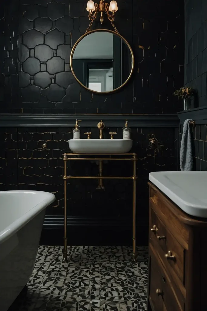 Moody vintage bathrooms blend sophisticated elegance with atmospheric drama for timeless appeal.