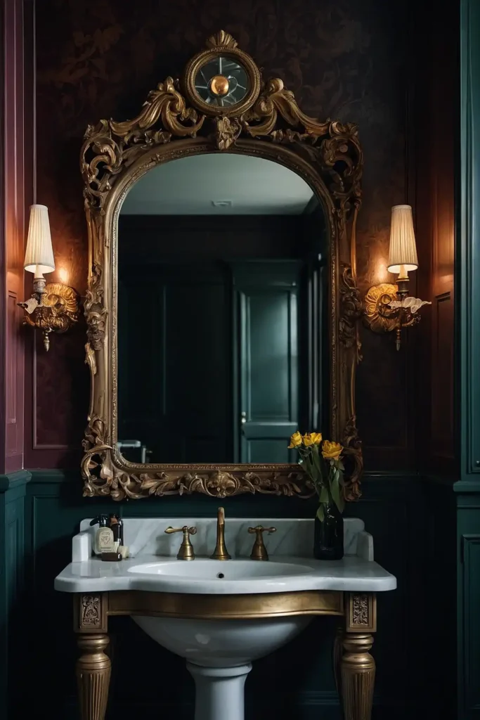You can choose gilded, carved, or etched mirror styles. Large mirrors make small bathrooms appear more spacious while adding vintage glamour.