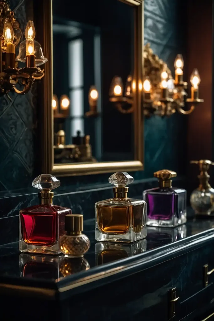 You can arrange bottles by color or size for visual impact. Cut glass and ornate stoppers catch light while adding feminine vintage luxury.