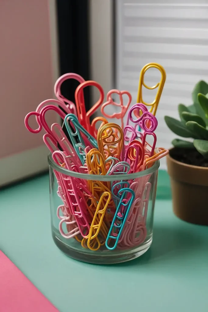 Colorful or shaped paper clips turn ordinary office supplies into cute accessories that add fun while serving practical purposes.