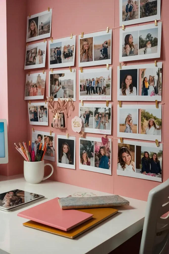 You create personal connection with a curated photo wall featuring family, friends, and favorite memories in pretty frames.
