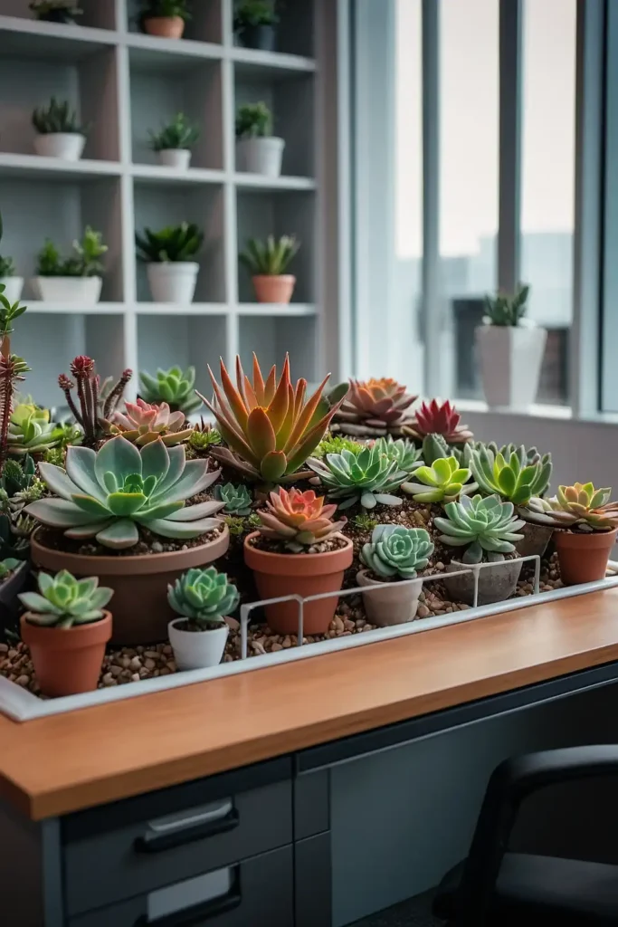 These hardy plants thrive in office lighting while providing natural beauty. Succulents come in amazing shapes and colors that create living art displays.