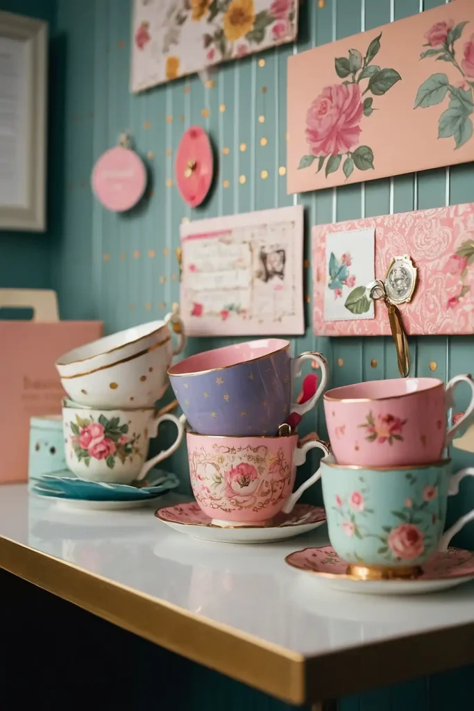 Hunt for floral patterns and delicate designs at thrift stores or antique shops. Each cup adds unique character while providing functional storage solutions.